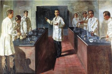 Ciencia con responsabilidad. El boceto de un científico y su grupo de investigación
